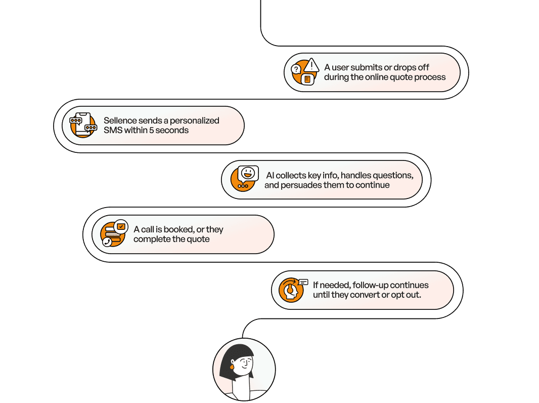 User starts but doesn’t finish the quote? Sellence texts in seconds and re-engages.